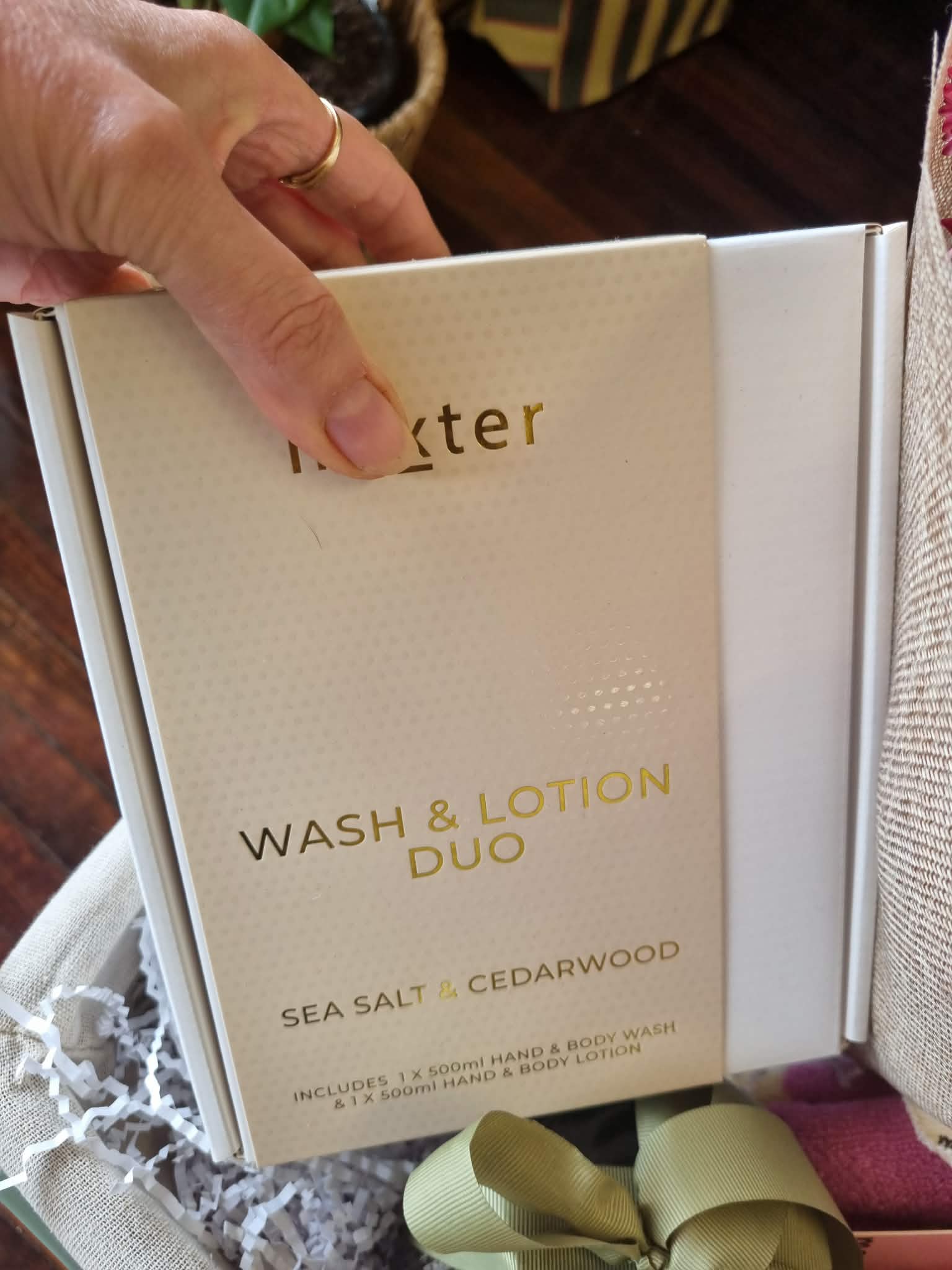 - Huxter wash n lotion duo, sea salt and cedarwood scent
